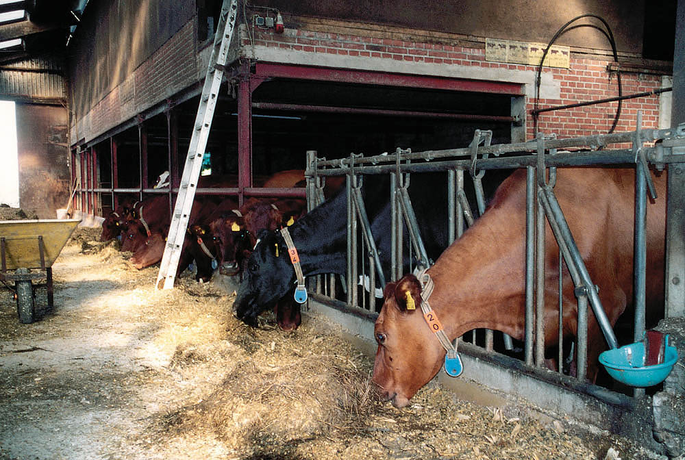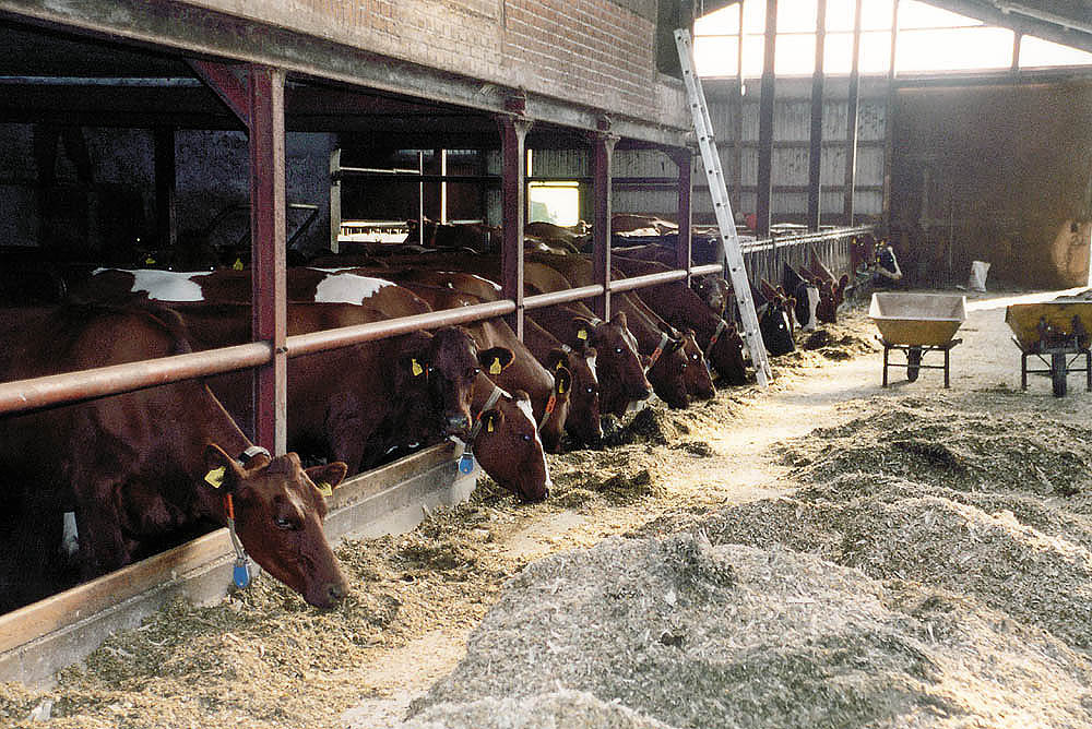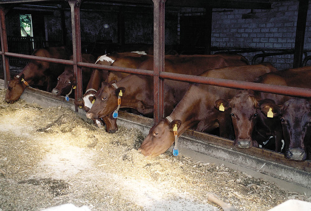 Abends werden die Tiere im Stall untergebracht, wo sie mit zusätzlichem Futter gefüttert werden (z.B. Mais-, Raps- oder Grassilage, Heu, etc.) |