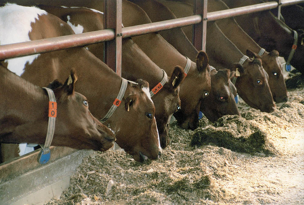 Kühe die viel Milch geben brauchen auch zusätzlich Energie-, Nähr- und Mineralstoffe. Damit diese Tiere keine Mangelerscheinungen erleiden, wird ihnen Kraftfutter verabreicht. Dieses Leistungsfutter enthält Getreide, Sojaschrot und andere Substanzen sowie Vitamine und Mineralien. |